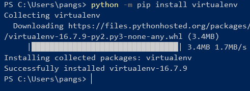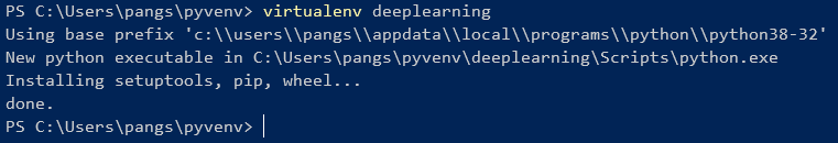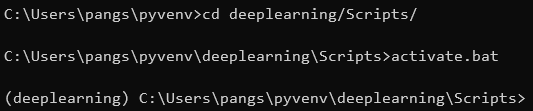 venv디렉토리/Scripts/activate 를 실행해준다. (powershell에서는 앞에 venv이름이 나오지 않아서 cmd로 다시 켰다.)