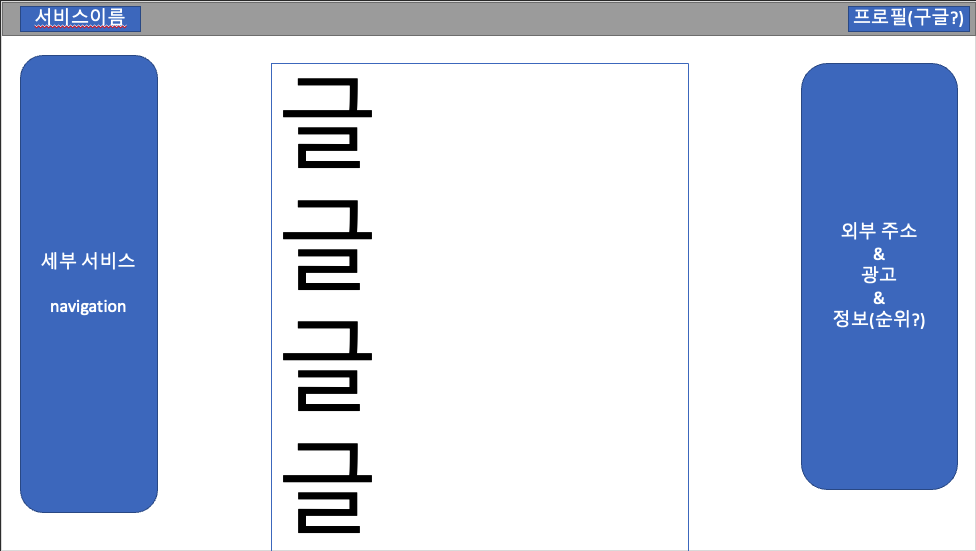 와이어프레임이라 하면 너무 할게 많으니까 대충 생김새만 그려봤다. 지금은 너무 구리지만 나중에 바꾸면 되니까 빨리 만들기나 해야겠다.